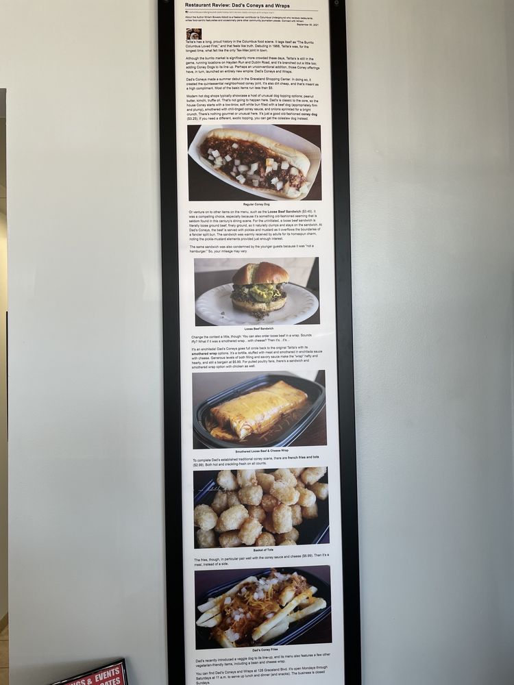 Welcome to Dad’s Coneys and Wraps Graceland, where comfort food meets convenience! Located at 128 Graceland Blvd in Columbus, Ohio, this vibrant eatery specializes in a mouthwatering selection of hot dogs, wraps, and crispy tots, perfect for a casual meal. The menu boasts delightful options such as the juicy West Virginia dog and the spicy Five Alarm hot dog, both praised for their bold flavors and quality ingredients.